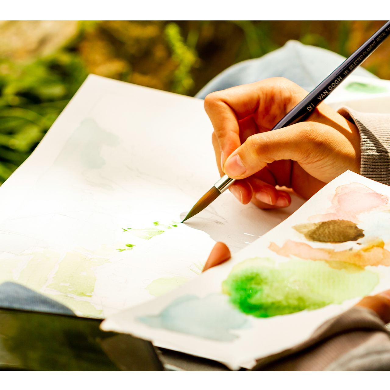 水彩训练的是“控制与流动”的平衡。它既考验对水与颜料比例的掌控,也要求对留白与透明层次的理解。课程从基础技法入手,逐步引导学员建立色彩逻辑与个人表达方式。